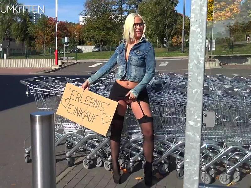 DISCOUNTER SIND BILLIG – ICH BIN BILLIGER. Auffällig knapp bekleidet mit Strapsen gehe ich auf einem Supermarkt Parkplatz meinem Hobby nach: Ich will einen Kerl nach dem anderen haben und mich durchficken und vollspermen lassen. Mit dem Schild „Erlebnis Einkauf“ ziehe ich eindeutiges Interesse auf mich als ich einen Mann im Auto anspreche, dessen Frau offensichtlich gerade im Laden beim Einkauf ist. Meinem absolut dreisten Angebot kann er nicht widerstehen. Schnell verziehen wir uns neben den Discounter wo ich sein geiles Rohr auspacke, das schon lange keine Fotze mehr von innen gesehen hat. Meine Nippel stehen vor Erregung, als ich seinen Prügel blase. Damit es schneller geht, trage ich kein Höschen drunter. Er packt sich meinen aufgestrapsten Arsch, zieht mein Röckchen hoch und knallt mich ohne Gummi doggy durch. Direkt an der Laderampe wo jeden Moment ein LKW Ware anliefern könnte, reite ich ihn geil ab und er legt mich danach nochmal schnell auf der Treppe flach. Als ich vor ihm kniend um sein Sperma bettel, spritzt er mir die Schlampenfresse komplett mit Ficksoße zu. Was ein scharfer Quickie. Gerade noch rechtzeitig, bevor seine Alte raus kommt…