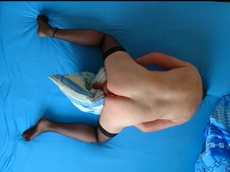 Bei Halterlosen Feinstrümpfen kommt man Schneller und Besser an Arschloch und Schwanz. In meiner Rosette steckt ein kleiner Plug die meine Prostata massiert und zusätzlich ein Geiles Gefühl in den Hoden macht. Da auch kein Fotze zum Ficken in der Nähe war – musste mal wieder mein Kopfkissen herhalten. Mein Schwanz fickte das weiche Kissen und der drang zu spritzen wuchs. Du böser Schwanz. Mit leichten Schlägen brachte ich ihn dazu mir dann auf den Bauch zu Spritzen. Herrlich diese heiße Sperma. Auch im Arsch fing es an zu zucken.