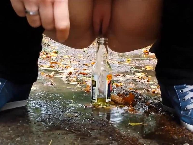 Wer viel unterwegs trinkt, muss auch viel und andauernd pissen. Gerade noch zum Autobahnparkplatz geschafft und Leggings runter gestreift. Um nichts zu verschwenden, wollte ich alles wieder dort auffangen, wo es her war. Ich sags euch: Es ist nicht leicht für ein Mädchen in eine enge Flasche zu pissen. Das meiste ging daneben 🙂 Aber ein bischen ist wieder in der Flasche gelandet.