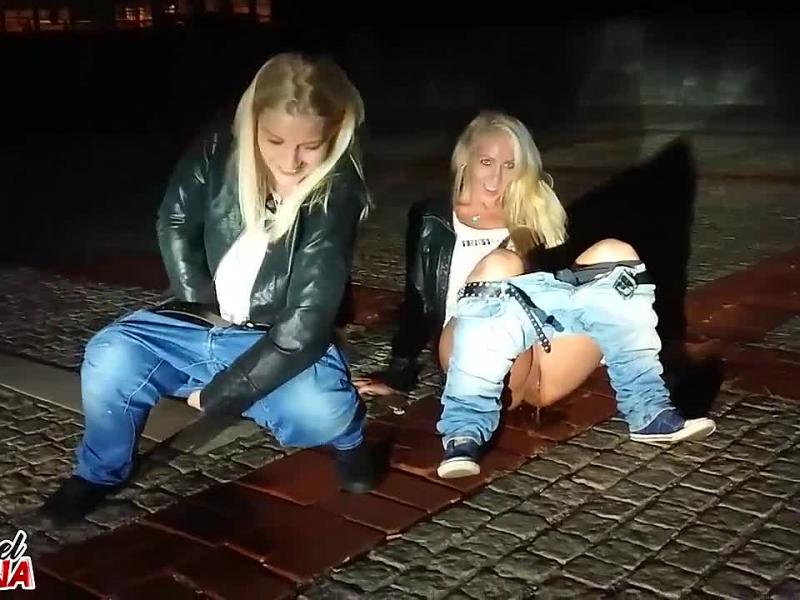 Immer mehr Leute gafften uns beim pissen zu. Mitten in der Stadt in Berlin unterm Funkturm zeigten wir jedem unsere Fotzen Public und pissten einfach vor allen Leuten drauf los. Vor Aufregung musste meine Freundin sogar mehrmals pupsen. Die kleine Drecksau. Ein Typ blendete uns sogar mit seinem Auto auf schaute uns zu und benannte uns am Ende als dreckige Huren. Ein geiler spontaner Piss. Berlin Piss bei Nacht 🙂 #pissen #public #jeans