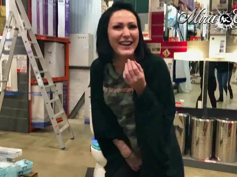 Es wurde mal wieder Zeit für volles Risiko! Ich war mit meiner Freundin Sandy im Baumarkt. Dort hatten sie eine fahrbare Toilette. Also die stand auf so einem kleinen Brett mit Rädern und man konnte sie herum schieben. Da kam mir doch glatt die Idee die Toilette einfach zu benutzen! Wir suchten uns einen geeigneten Platz und rollten die Toilette dort hin. Natürlich waren überall Leute im Baumarkt und auch Kameras hingen dort. Nun hieß es schnell handeln. Mir ging der Arsch ganz schön auf Grundeis. Mitten im Baumarkt sich da hinzusetzen und los zu pissen – welch ein Nervenkitzel! Das war schon spannend oder?